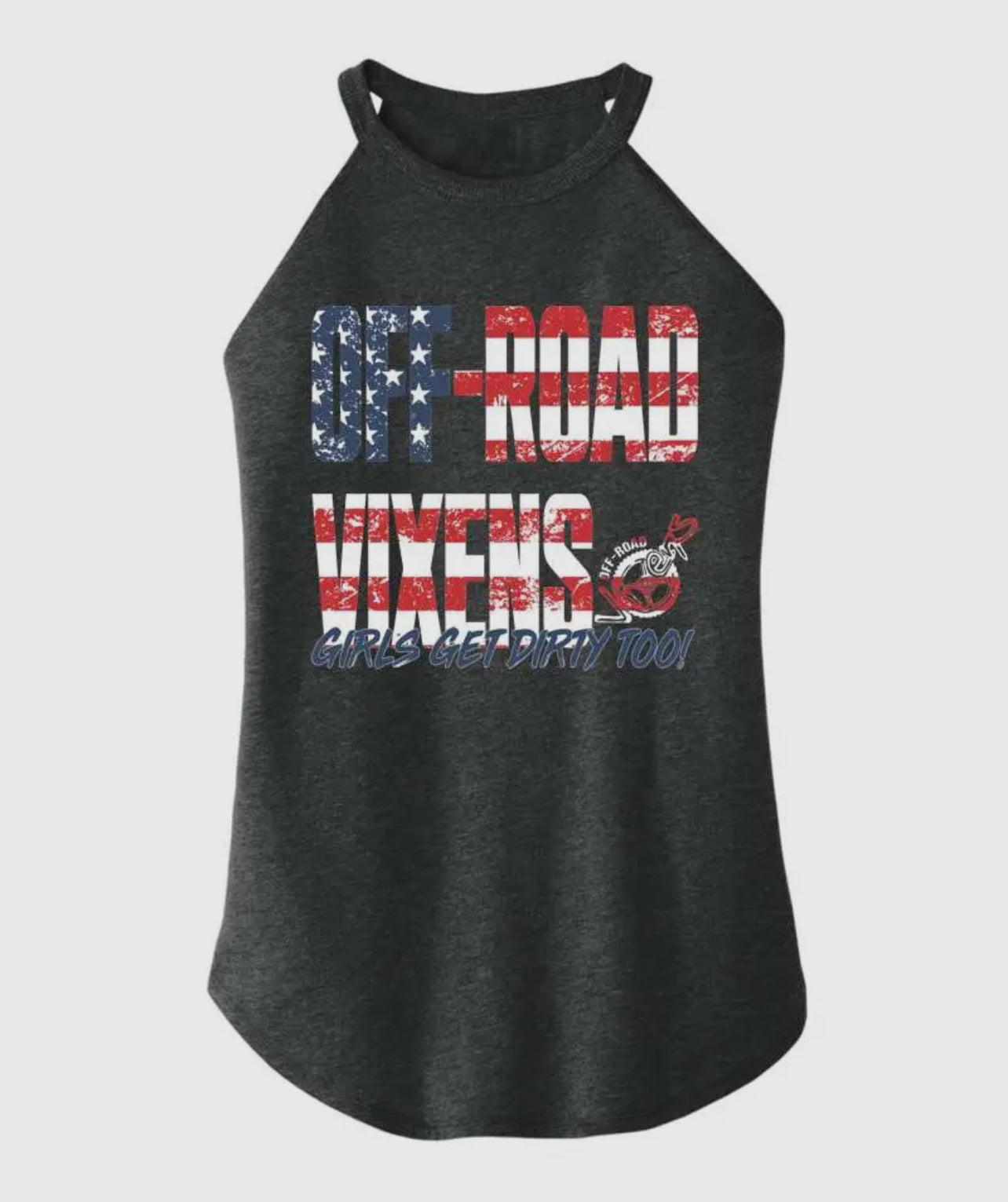 Show your American pride with this all-new design! We can hear the bald eagles screaming already! Featuring “Off-Road Vixens” in a bold red, white, and blue American flag print on the front and “Don’t tread on me” down the spine. This hoodie is the perfect way to show your patriotism.