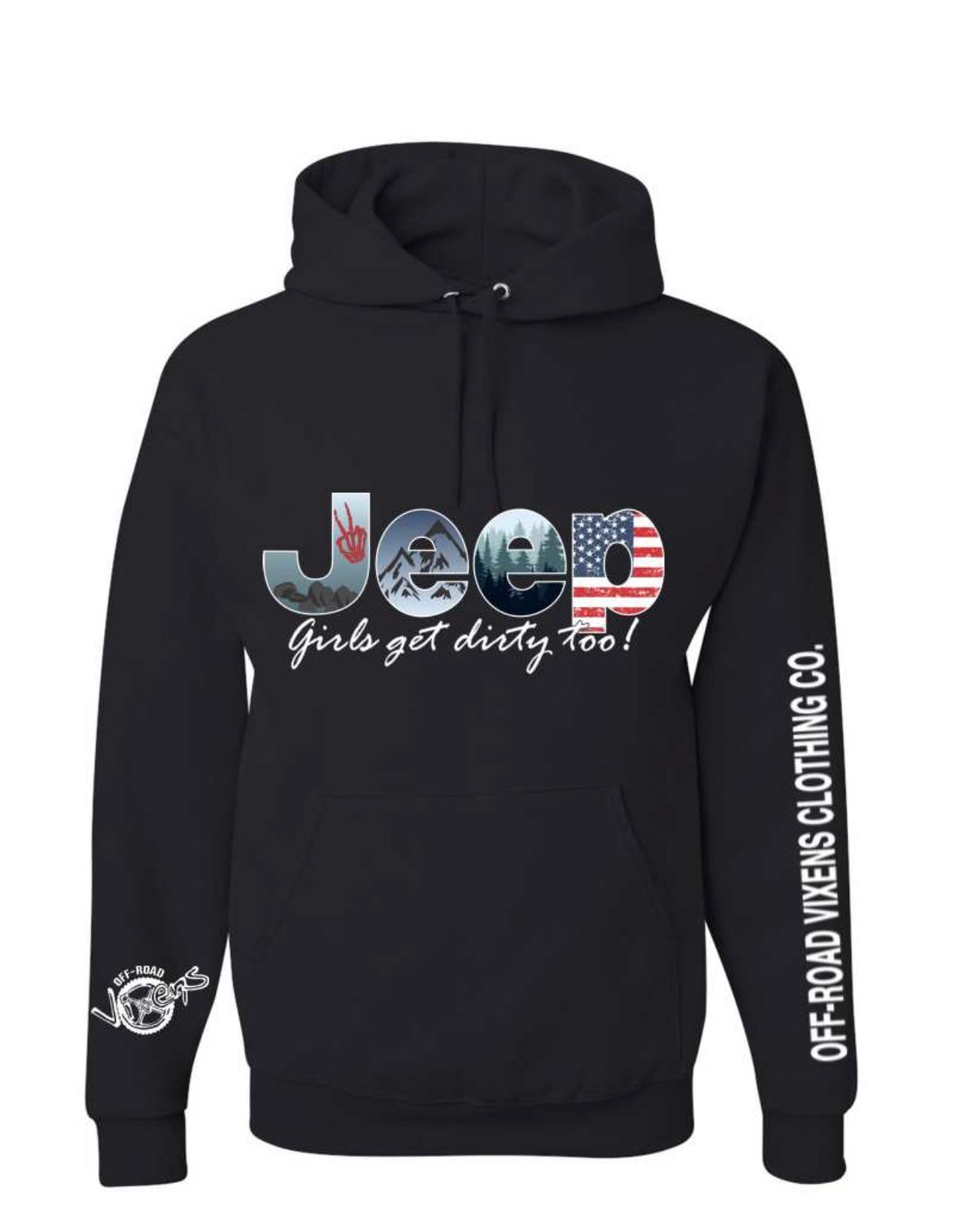 For those who live life off-road, the Jeep Girl Unisex Pullover Hoodie is the perfect addition to your wardrobe. Express your unique sense of adventure with this cozy hoodie, reminding everyone that Jeep girls have more fun. This design has a little bit of everything, rocks, mountains, trees, and the American flag on a comfy black pullover hoodie.