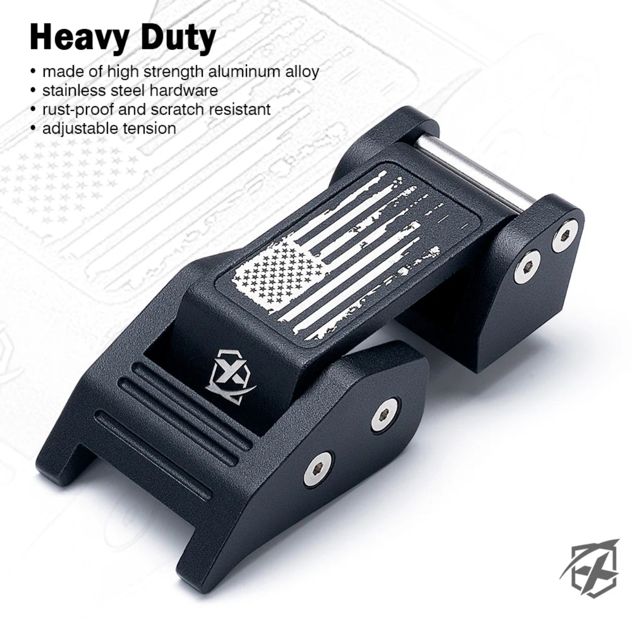 1x Xprite Black Aluminum Hood Latch Kit with Distressed U.S. Flag